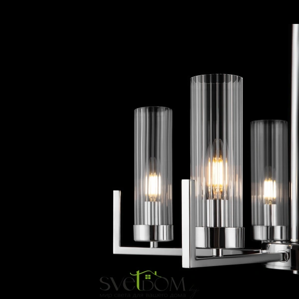 Дизайн на стыке классики и современности, выдержанная эстетика американского стиля в лаконичном исполнении. adeline  – выбор тех, кто ценит традиции. арматура из металла представлена в оттенках хрома и латуни. её строгий силуэт подчеркнут минималистичными плафонами-цилиндрами. граненое стекло с ребристым рисунком – актуальный тренд, создающий модный контраст фактур. направленные вверх источники света равномерно распределяют световой поток по комнате и визуально приподнимают потолки. в серию входят люстры на 5, 8 ламп и бра – вы можете сформировать комплексный световой сценарий с общим и зональным освещением. элегантный дизайн актуален для интерьеров в стиле неоклассика, ар-деко, модерн.