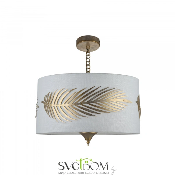 Золотая пальмовая ветвь — символ победы и триумфа. вырезанная из листового металла, она расположилась на абажурах светильников серии. арматура изготовлена из металла золотого цвета. абажуры из белой ткани, нанесенной на пвх. внутреннее устройство подвесных светильников скрыто за рассеивателем, который фиксируется декоративным наконечником. высота подвесных светильников регулируется длиной цепи.