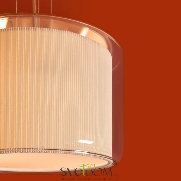 Сочетание стекла и тканевой плиссировки для мягкого рассеянного света. Лампы E27 (в комлекте). Особенность плафонов -  их многослойность. В серии представлены подвесной, потолочные и настенный светильники.