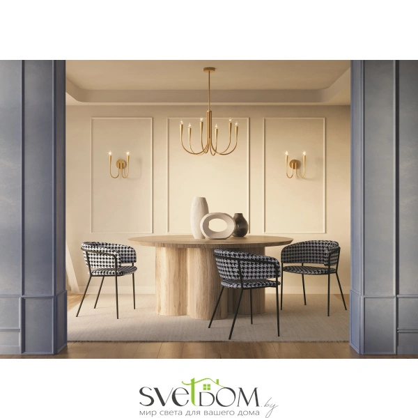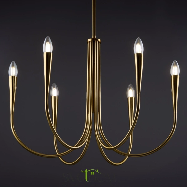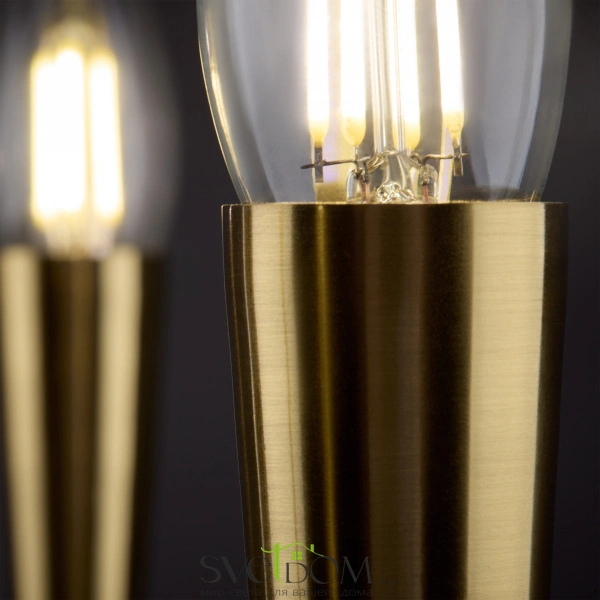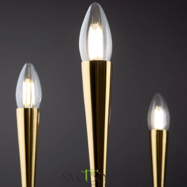 Арматура из металла, цвет – латунь и никель. отсутствие декоративных элементов. тонкие, плавные линии арматуры, сдержанный силуэт создают образ естественного благородства, уместного в любом интерьере. подходят лампочки в форме свеч. источник света - лампа с цоколем e14.