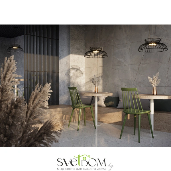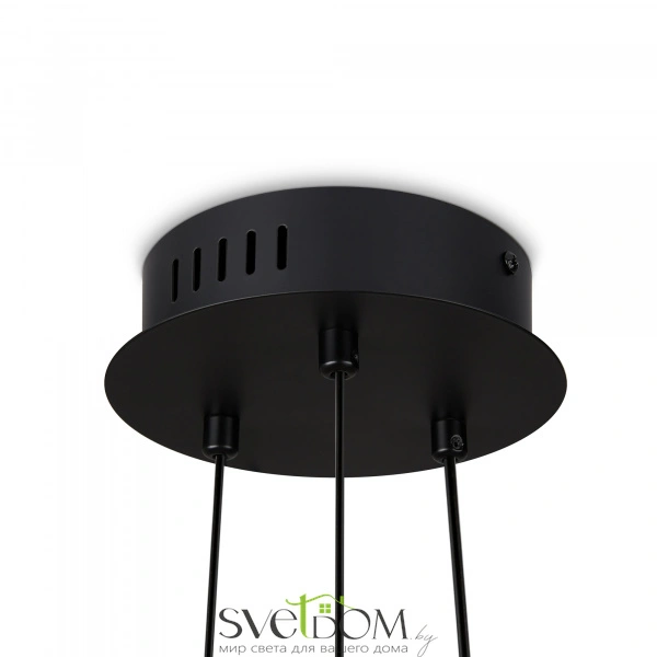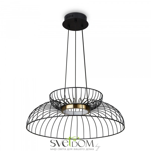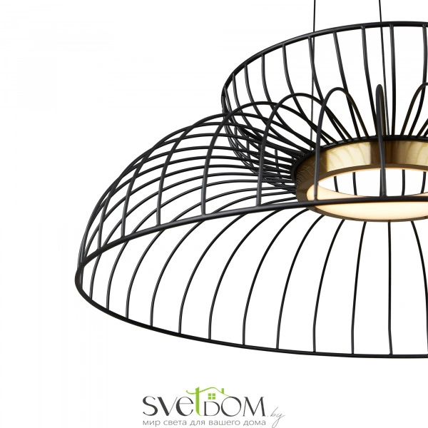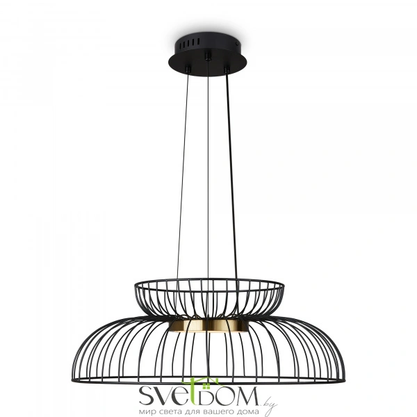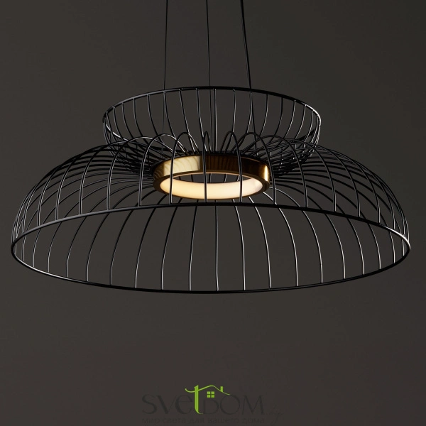 Металлическая арматура чёрного цвета. LED-источник света обрамлен декоративным металлическим кольцом цвета латунь. Минималистичный дизайн - хорошо сочетается с другими осветительными приборами. Высота подвеса регулируется. Цветовая температура - 3000К.