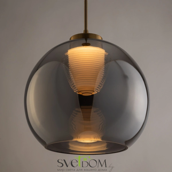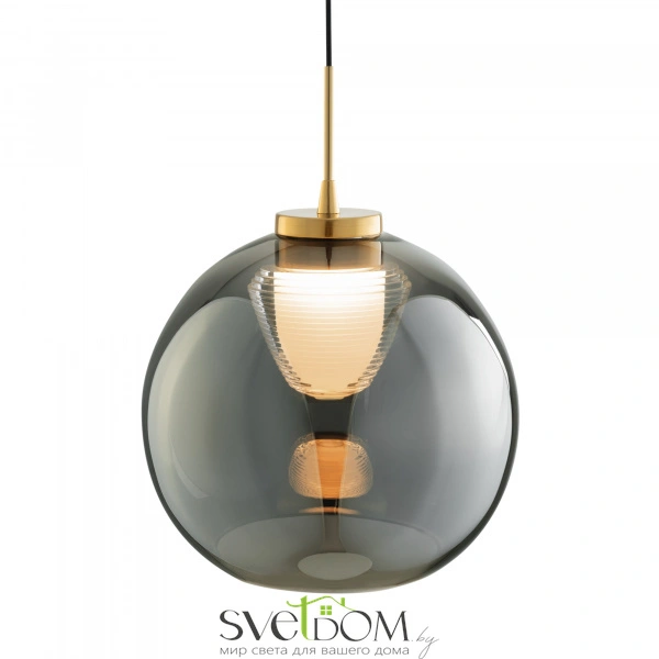 Арматура — металл, цвет — латунь. Плафоны из прозрачного стекла с дымчатым оттенком в форме овала, круга или конуса. Универсальный минималистичный дизайн позволяет составлять комбинации из нескольких подвесов. Регулируемая высота. Тренд «invisible light» - LED-источник света утоплен в основание плафона. Цветовая температура - 3000К.