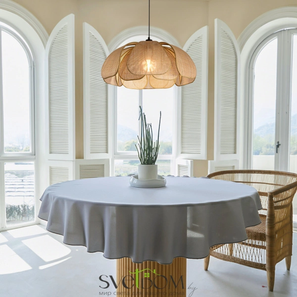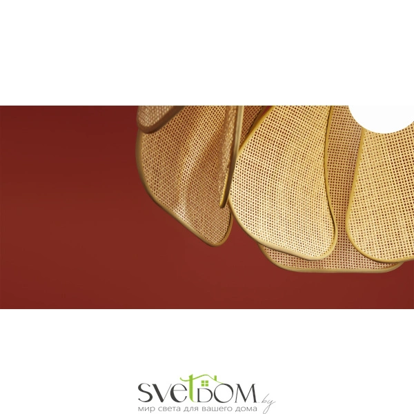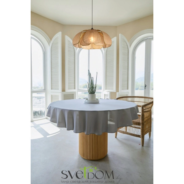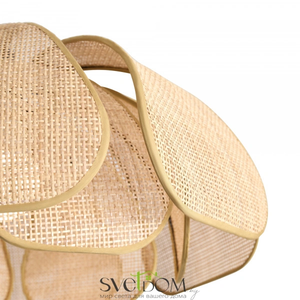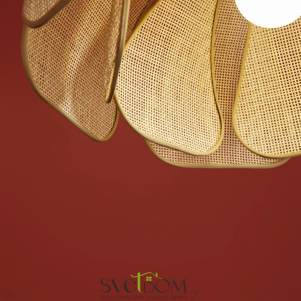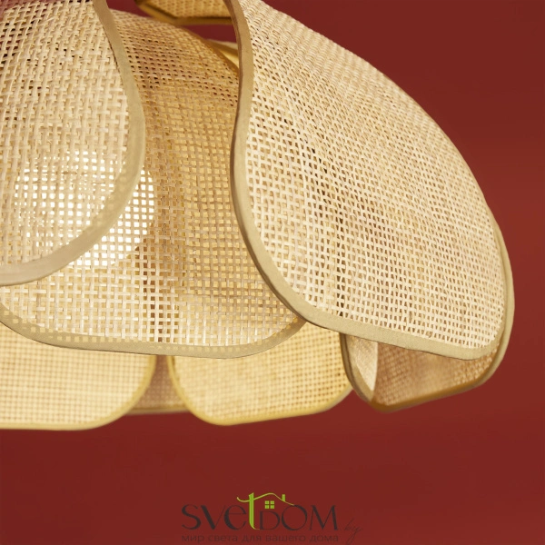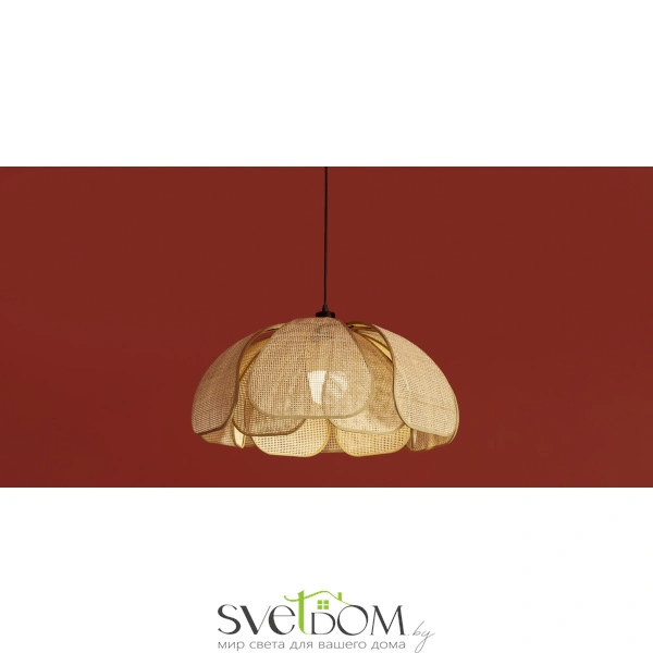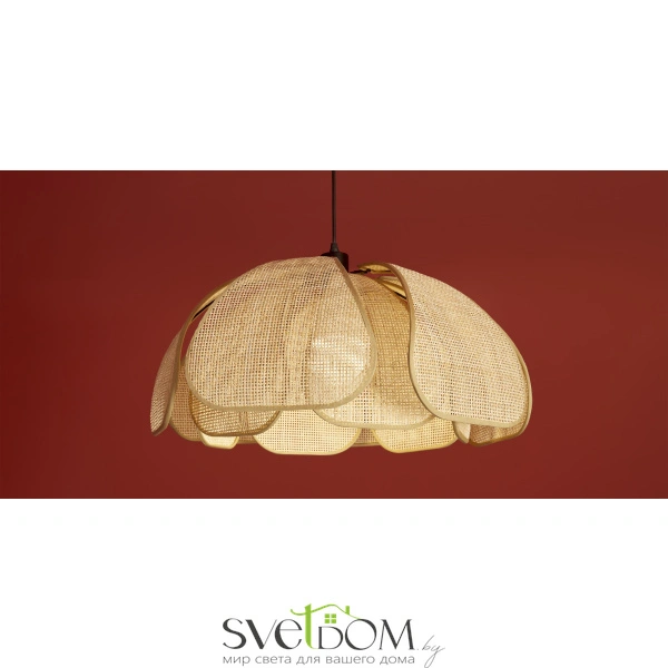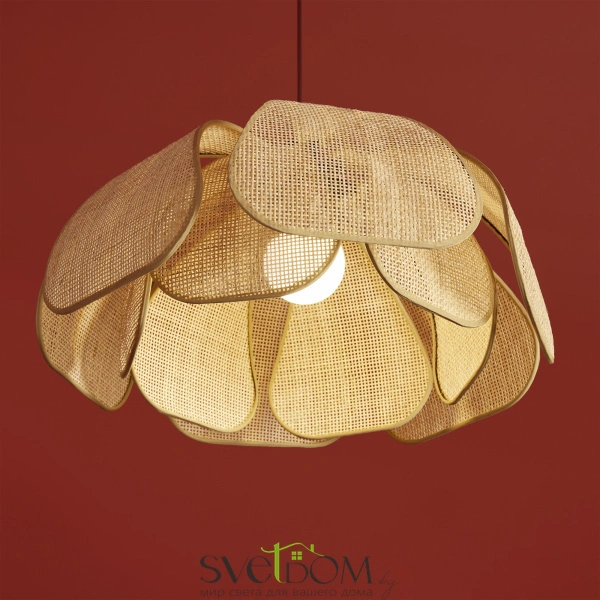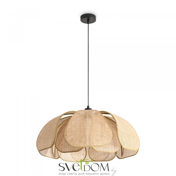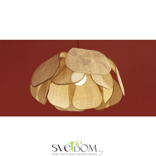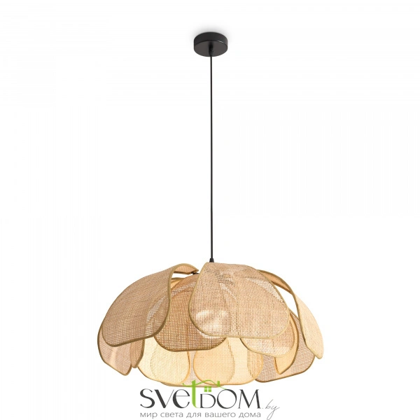 Материал арматуры — металл, цвет — черный. Подвесная модель с цоколем E27. Абажур выполнен из натурального ротанга бежевого цвета в форме цветка. Использование природных материалов и изящная форма светильника делают его подходящим для интерьеров в стиле французского прованса или балийском стиле.