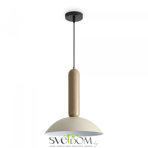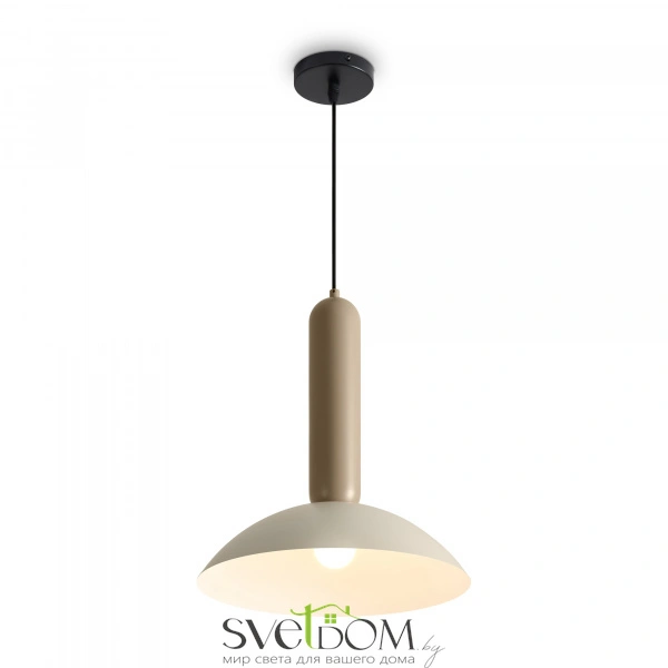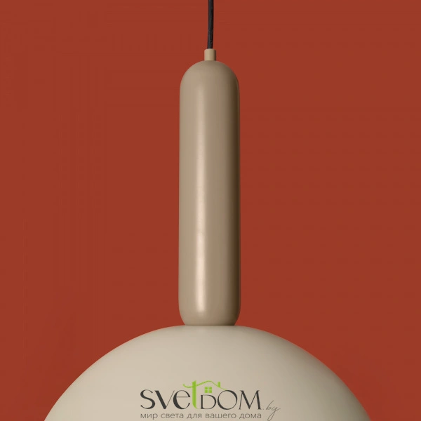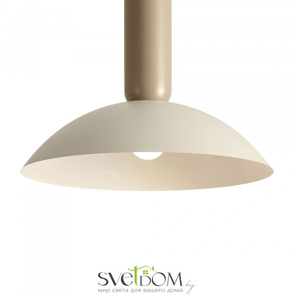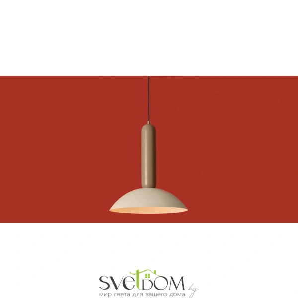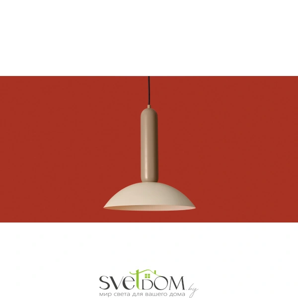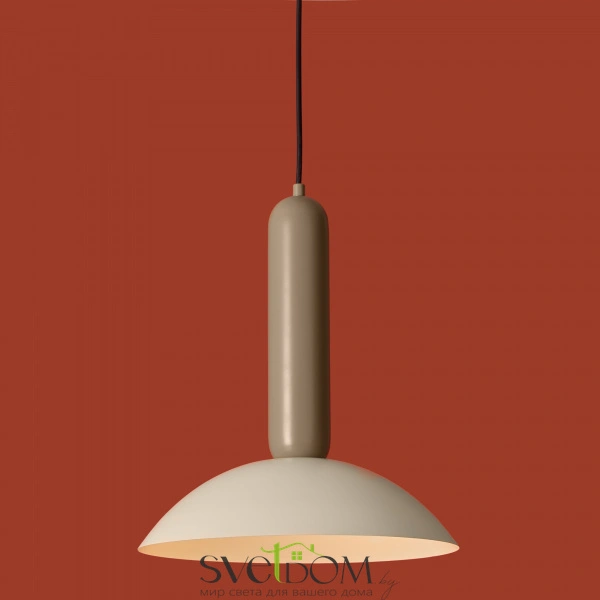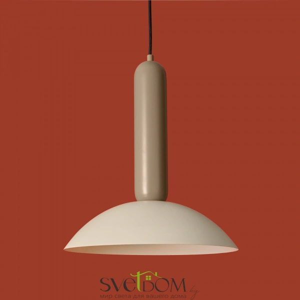 Материал арматуры — металл, цвет — черный. Каждый подвеской светильник окрашен в 2 цвета: серо-бежевый (RAL 1019 ) и жемчужно-белый (RAL 1013), Каменно-серый (7030) и Белый (9010),  Белый (9010) и Каменно-серый (7030). Необычный плафон-купол небольшой высоты дополнен подвесом цилиндрической формы. Подходит для современных интерьеров: лофт, джапанди и минимализм. Номер Ral носит рекомендательный характер.
