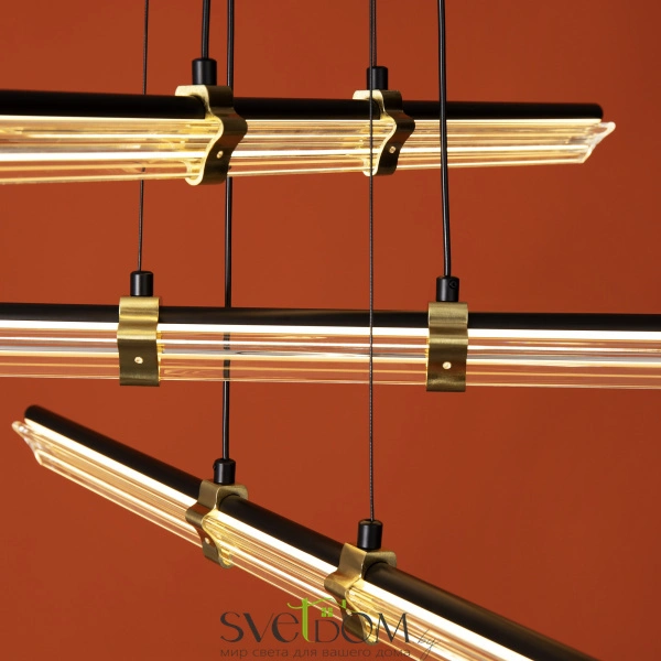 Материал арматуры — металл, цвет — черный и латунь. Все модели серии Brilliance оснащены LED-источником света. Цветовая температура 2700К. Прозрачные стеклянные рассеиватели. Регулируемая высота. Особенностью серии являются поворотные LED-трубки, позволяющие менять направление светового потока и создавать различные световые композиции.