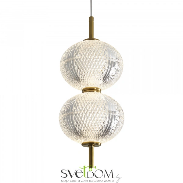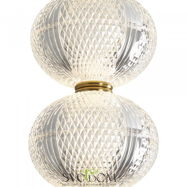 Арматура выполнена из металла в цвете латунь. прозрачные плафоны. вертикальные и горизонтальные подвесные светильники разных размеров. led источник света. цветовая температура 3000к.