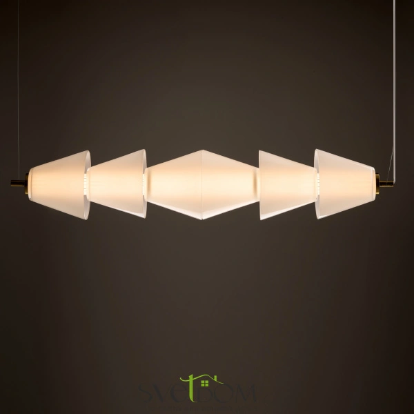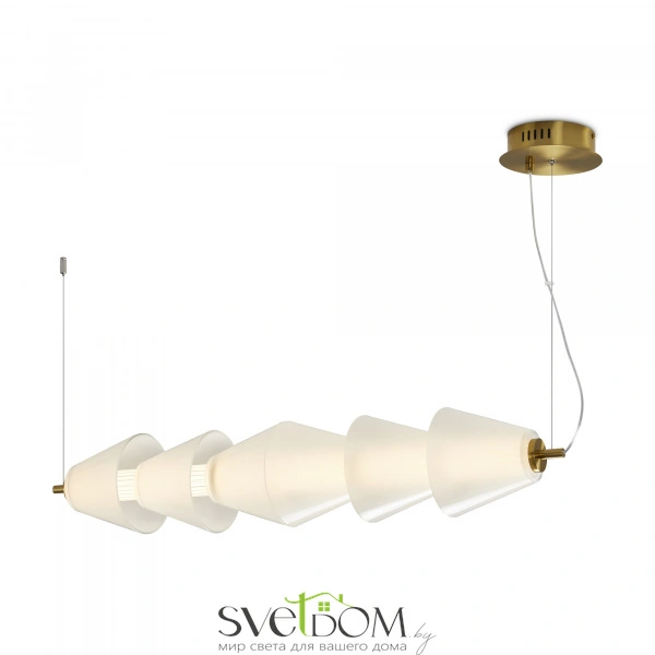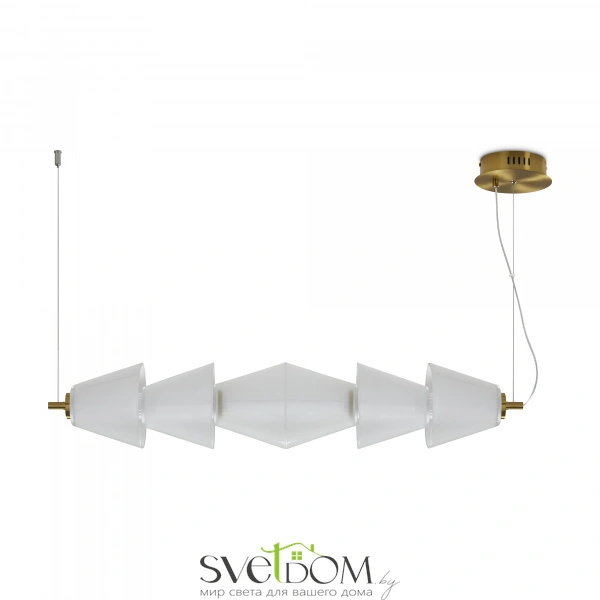 Арматура из металла. цвет латунь. плафон из матового, кристально прозрачного и дымчатого стекла. горизонтальные и вертикальные подвесы. led источник света. цветовая температура 3000к.