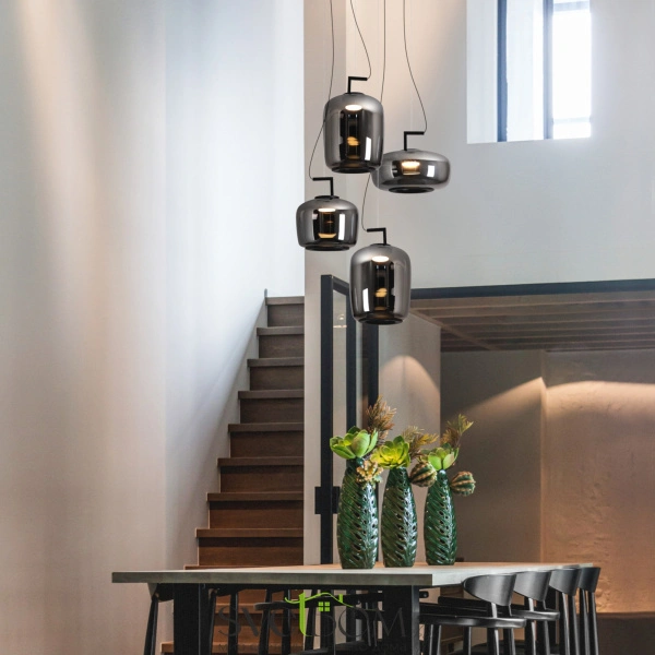 Серия Clod представлена тремя подвесными светильниками разных размеров и форм. Плафоны из стекла дымчато-серого цвета с гальваническим покрытием. Арматура — металл черного цвета.  LED источник света 3000K. Светильники Clod раскрывает свой потенциал при комплексной развеске, следуя трендовому направлению в дизайне использовать разные формы. Создает мягкое, атмосферное освещение, подходящее для современных интерьеров.