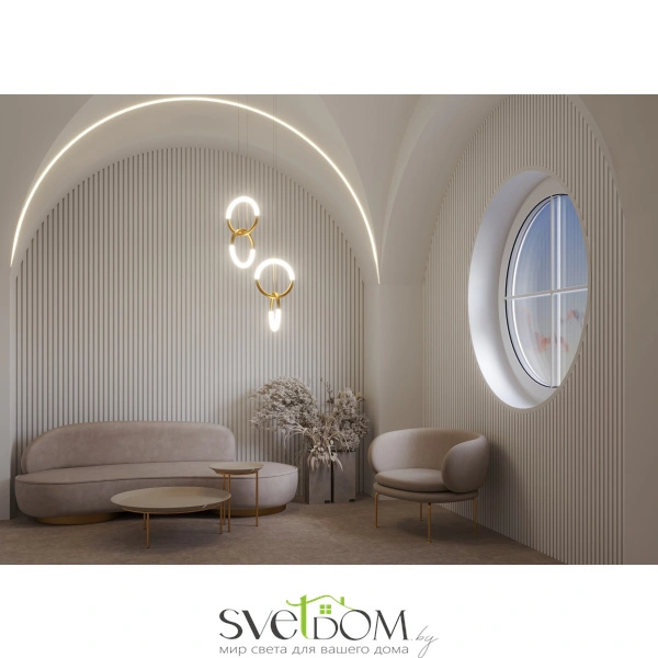 Материал арматуры – металл. Оттенки – черный, золото. Положение световых колец регулируется. LED-источник света закрыт матовым рассеивателем. Цветовая температура 3000К. Высокий индекс цветопередачи 90Ra.