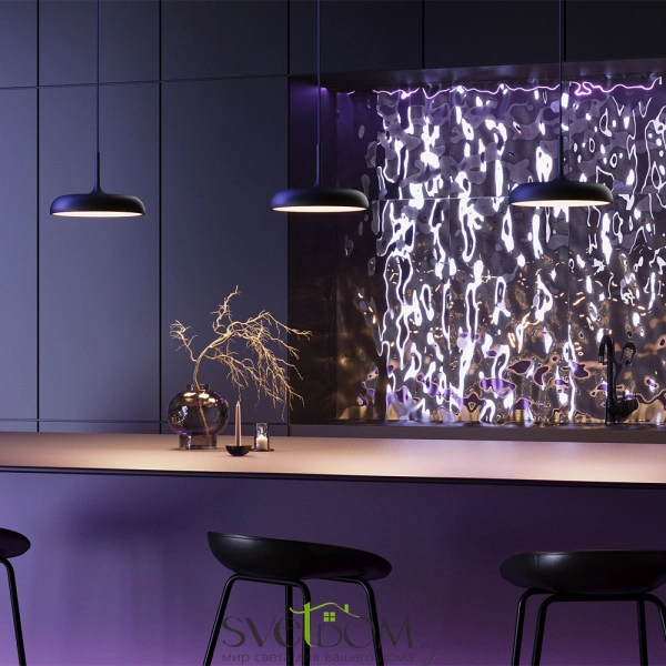 Арматура и плафон из металла, цвета - черный, белый, серый. шагреневая поверхность - предотвращает следы от рук и пыли. белый матовый рассеиватель из акрила хорошо пропускает свет, предотвращает слепящий эффект. регулируемая длина провода - до 3 метров. led-источник света. цветовая температура 3000к.