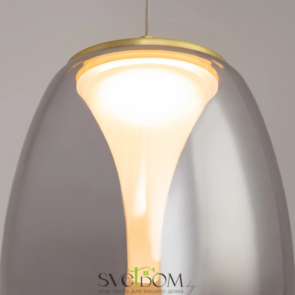 Цвет арматуры -  сатинированное золото.  плафоны из двойного стекла.  внешние плафоны  в двух  цветах: прозрачный и гальванизированный серый с эффектным градиентом - придают освещению глубину и насыщенность. led источник света с цветовой  температурой 3000k. провод подвесных светильников  регулируемый - длина 3  метра. идеальны для помещений с высокими потолками.