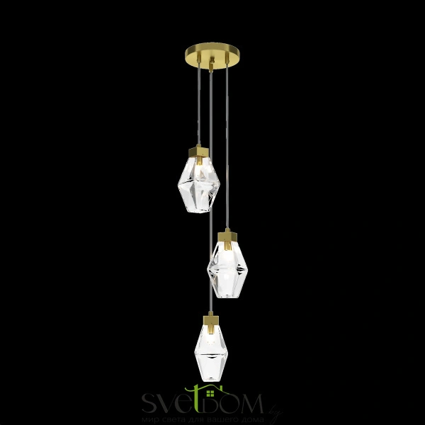 Металлическая арматура. Оттенки – золото, жемчужное золото. Плафоны – прозрачное литое стекло. Эффектный дизайн с крупными гранями. Регулируемая высота. Источник света – лампа с цоколем G9.