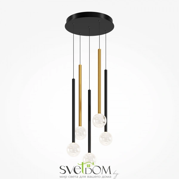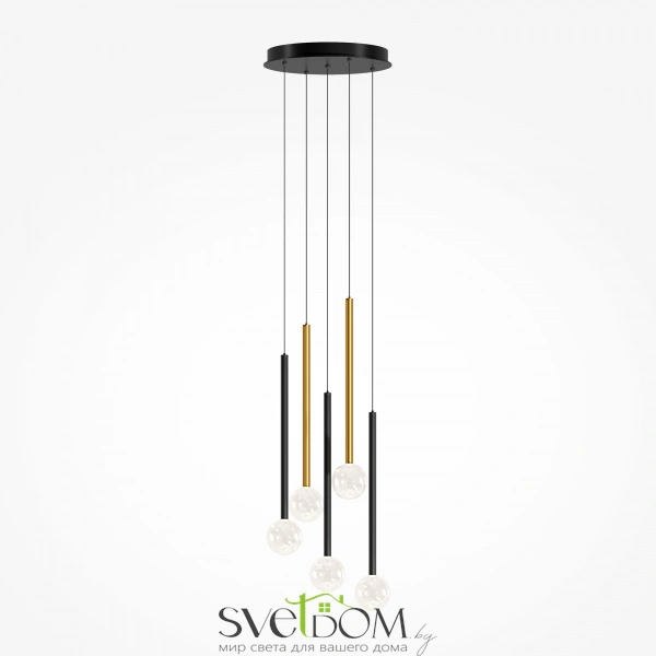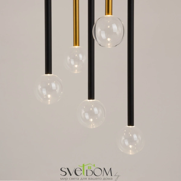 Цвет арматуры — черный, латунь, комбинация черный и латунь. Материал арматуры — металл. Цветовая температура 3000К. Оригинальный «невесомый» дизайн с тонкими металлическими трубками и стеклянными шарами-плафонами. LED-источники света. Регулируемая длина провода подвесных светильников, 3 метра, подходит для помещений с высокими потолками. Каскадная композиция на 7 и 15 плафонов оснащена проводом длиной 3,5 метра для эффектных дизайнерских решений. Подходит для высоких потолков. Парящие модели для создания легкой, воздушной атмосферы в интерьере.