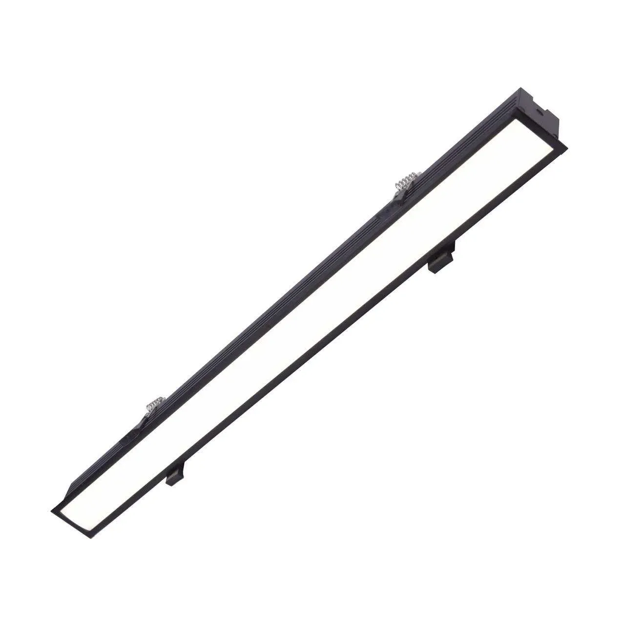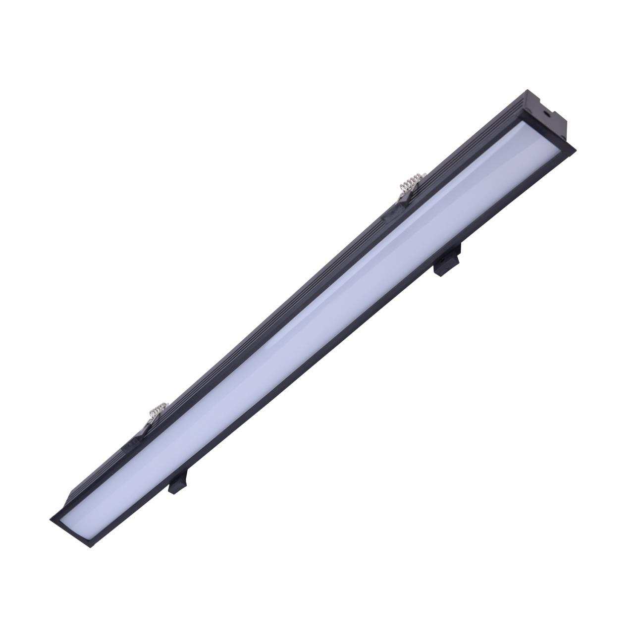 Врезной светильник, каркас черного цвета, рассеиватель из белого акрила