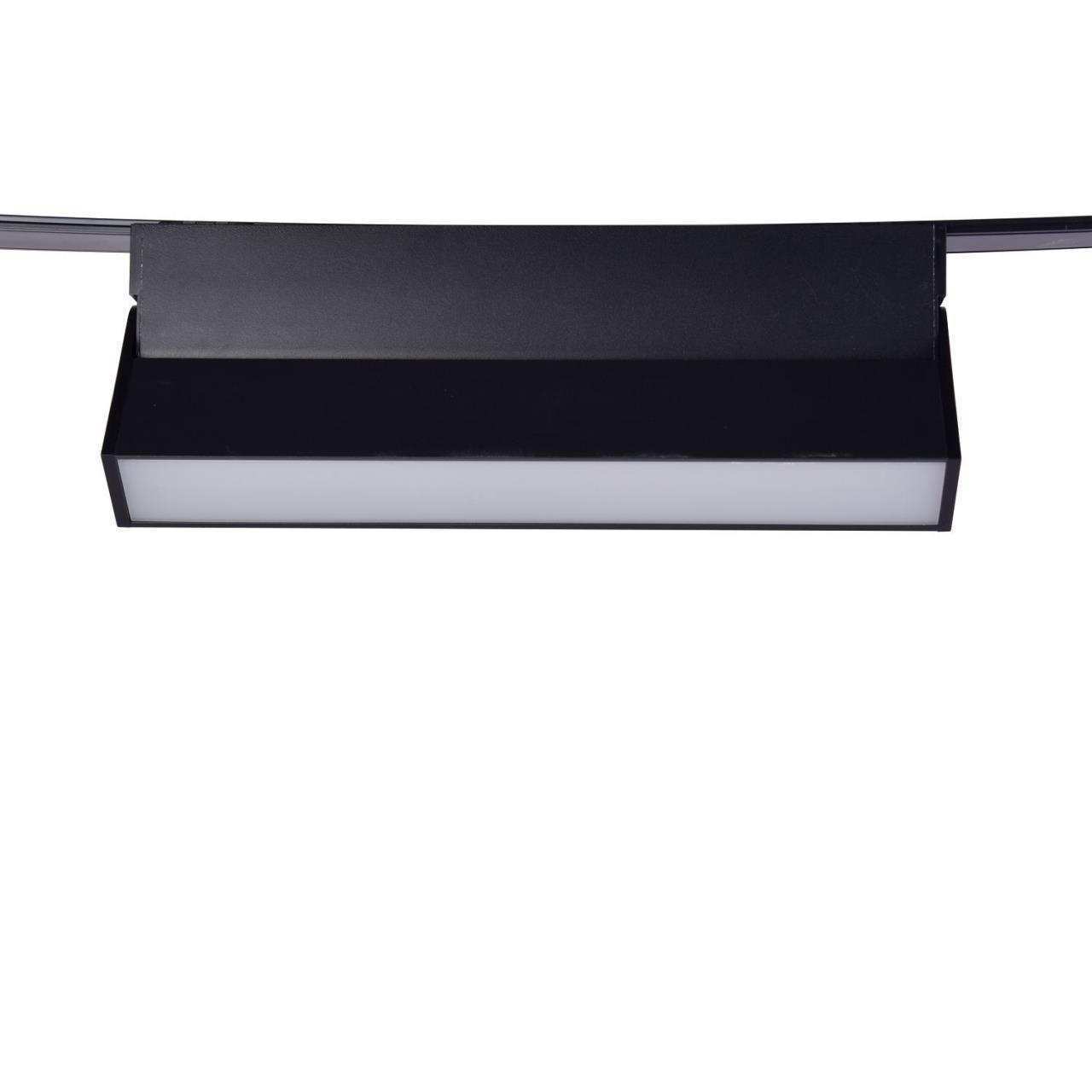 Магнитный светильник на шинопровод черного цвета с белым акриловым рассеивателем, поворотный механизм позволяет менять направление светового потока