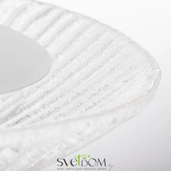 Плафон из прессованного стекла с эффектом "заморозки" — главный элемент светильников серии. массивное стекло полностью скрывает металлический каркас. фигурный наконечник из прозрачного стекла фиксирует плафон на каркасе и является элегантным украшением конструкции.
