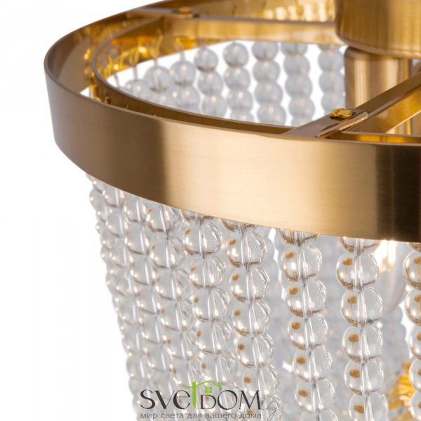 Материал абажура — хрустальное стекло, цвет — прозрачный. металлическая арматура в цвете латунь. потолочный светильник не регулируется по высоте. источник света — лампы с цоколем е14. степень защиты — ip20.
