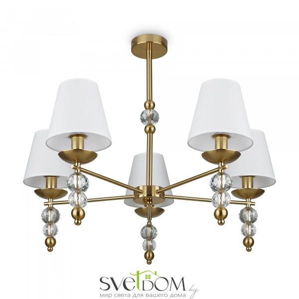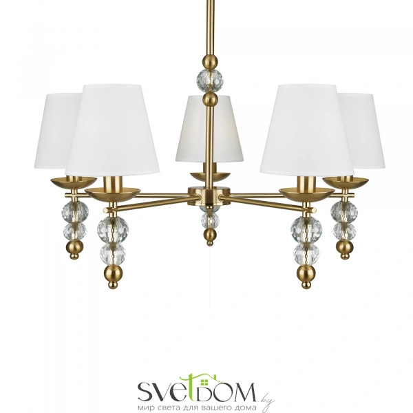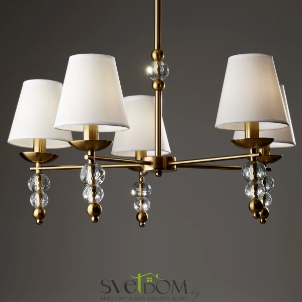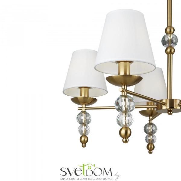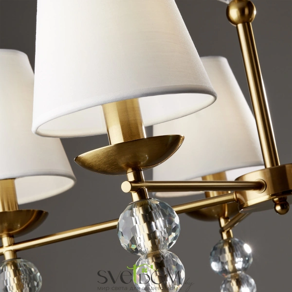 Материал абажура — ткань, цвет — белый. металлическая арматура в цвете латунь обрамлена хрустальными бусинами. источник света — лампы с цоколем е14. степень защиты — ip20.