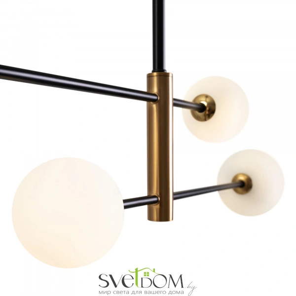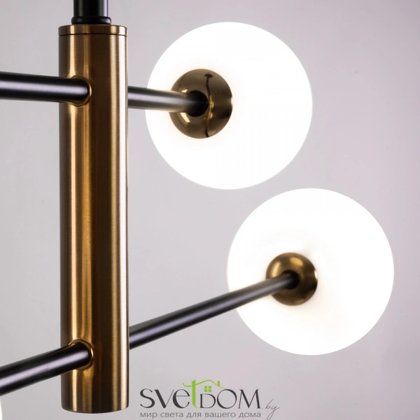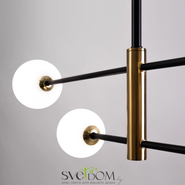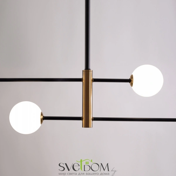 Металлическая арматура. Цвет — чёрный с золотистыми вставками. Плафоны — круглые из белого матового стекла - обеспечивают мягкое заливное освещение. На корпусе бра удобная кнопка для включения. Дизайн — минималистичный Источник света — лампа с цоколем G9.