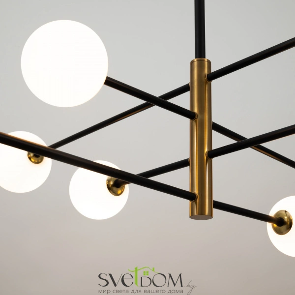 Металлическая арматура. Цвет — чёрный с золотистыми вставками. Плафоны — круглые из белого матового стекла - обеспечивают мягкое заливное освещение. На корпусе бра удобная кнопка для включения. Дизайн — минималистичный Источник света — лампа с цоколем G9.