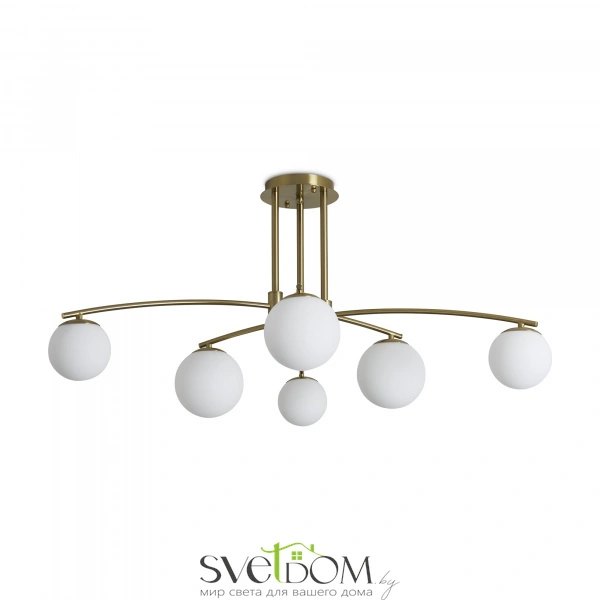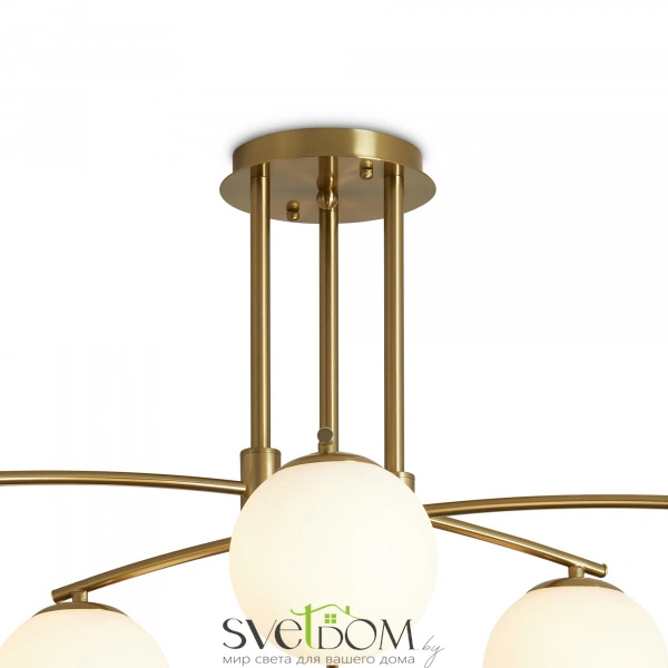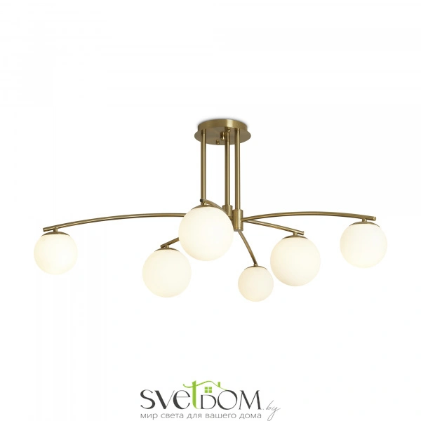 Арматура металл. цвет латунь. серия с необычной формой арматуры и раскидистыми плафонами. белые плафоны в форме шара. источник света лампа. цоколь e14.