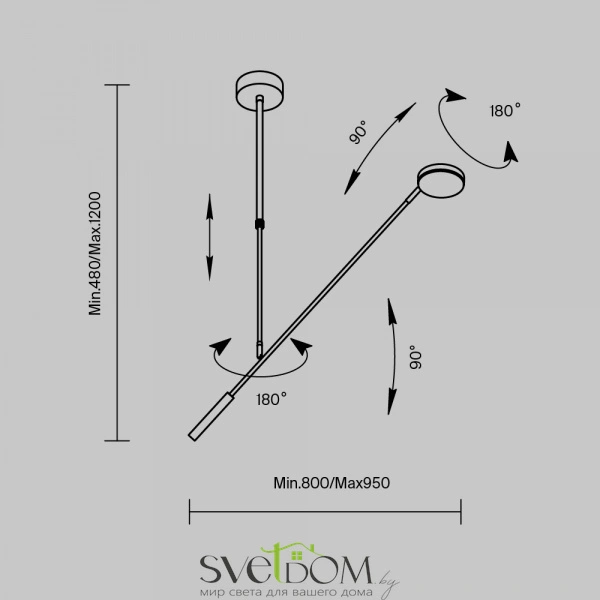 Плафоны и арматура из металла. Цвет рассеивателя — белый, арматура черная или белая. Конструкция предусматривает шарнирный механизм, позволяющий регулировать направление света и высоту светильников. Плафоны вращаются на 90 и 360° (в вертикальной и горизонтальной плоскостях). Угол рассеивания — 120 градусов. Тип света — рассеянный.