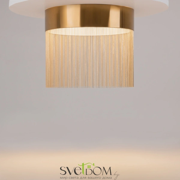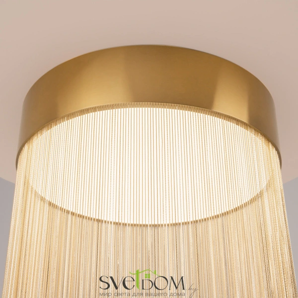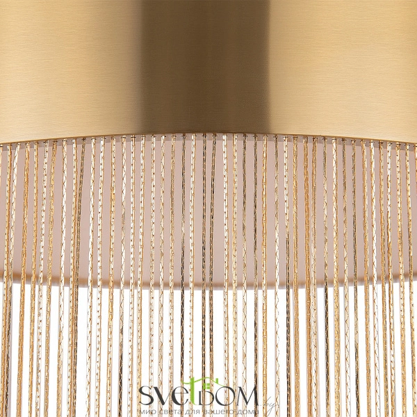 Металлическая арматура, цвет - золото. мотивы ювелирного искусства в дизайне. изящные цепочки на корпусе светильника создают переливы бликов. led источник света. цветовая температура - 3000к. регулируемая высота подвесного светильника.