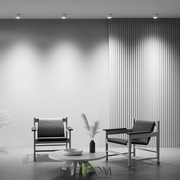 Стильный матовый рассеиватель. Цвета: чёрный, белый и серый. Накладной монтаж. Источник света - лампа GX53.