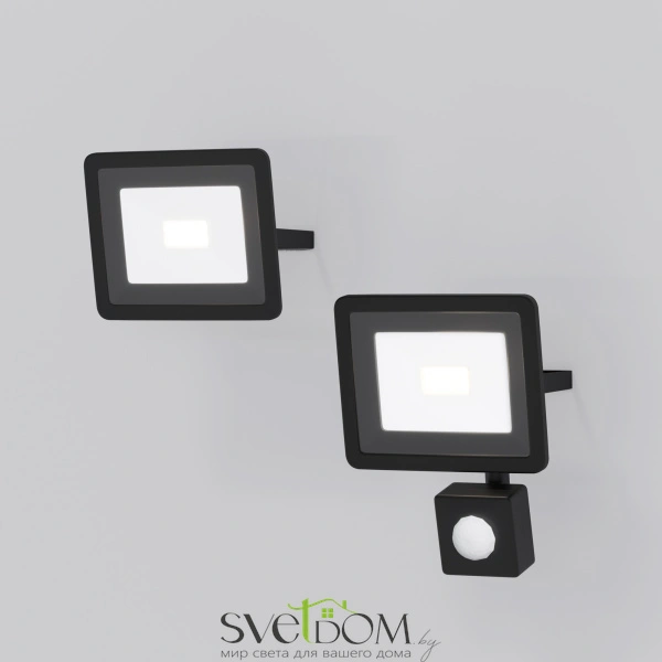 Прожекторы для освещения  экстерьеров, рабочих пространств, производственных и промышленных помещений. материал корпуса — алюминий. цвет — чёрный. led-источник света.  два варианта цветовой температуры - 4000к и 6500к. пять размеров с соответствующими вариантами мощности — 10, 30, 50 вт с датчиком движения. модели 100 и 150 вт без датчиков движения. высокая степень защиты от пыли и влаги ip65.