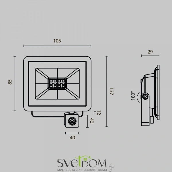 Прожекторы для освещения  экстерьеров, рабочих пространств, производственных и промышленных помещений. материал корпуса — алюминий. цвет — чёрный. led-источник света.  два варианта цветовой температуры - 4000к и 6500к. пять размеров с соответствующими вариантами мощности — 10, 30, 50 вт с датчиком движения. модели 100 и 150 вт без датчиков движения. высокая степень защиты от пыли и влаги ip65.