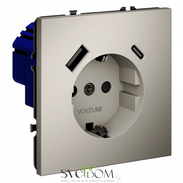 Розетка с USB, A+C Voltum S70 VLS040503 от Voltum — практичная розетка для аккуратного монтажа с рамками Voltum S70 (1–5 постов).