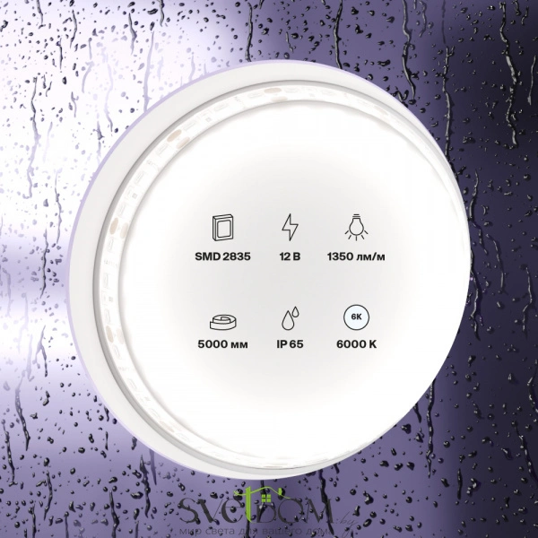 —Купить Светодиодная лента 12В 2835 14,4Вт/м 6000K 5м IP65 10119