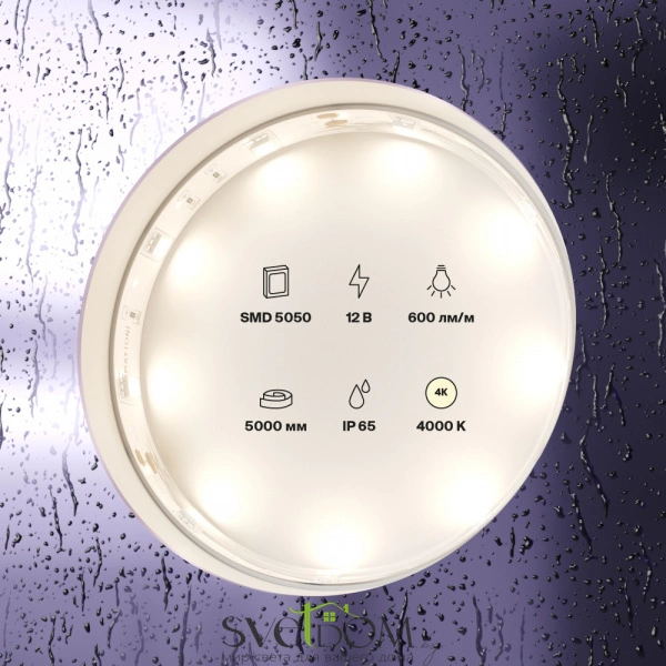 —Купить Светодиодная лента 12В 5050 7,2Вт/м 4000K 5м IP65 10124