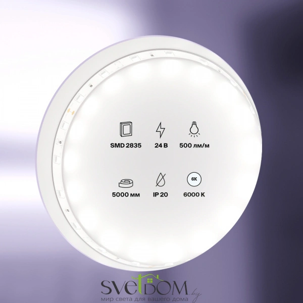 Купить Светодиодная лента 24В 2835 4,8Вт/м 6000K 5м IP20 10138