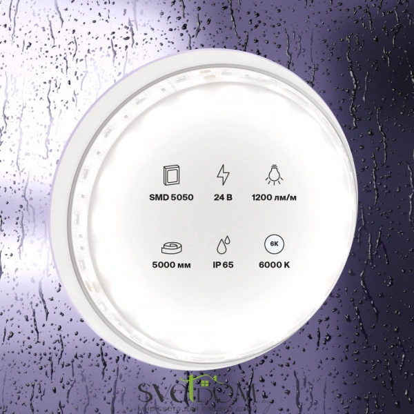 —Купить Светодиодная лента 24В 5050 14,4Вт/м 6000K 5м IP65 10173