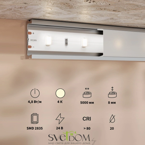 Универсальная светодиодная лента. Мощность - 4,8 Вт/м, 9,6 Вт/м, 14,4 Вт/м. Цвета - теплый белый 3000К, белый 4000К, холодный 6000К, красный, зеленый, голубой. Плотность светодиодов - 60 шт/м и120 шт/м. Размеры - 8х5000мм, 10х5000мм. Кратность реза 50 мм, 100 мм, 25 мм. Индекс цветопередачи >80Ra. Угол рассеивания 120°. Рабочее напряжение 12В и 24В. Для декоративной подсветки интерьера, мебели и потолочных ниш. Может использоваться в качестве подсветки рекламных конструкций.