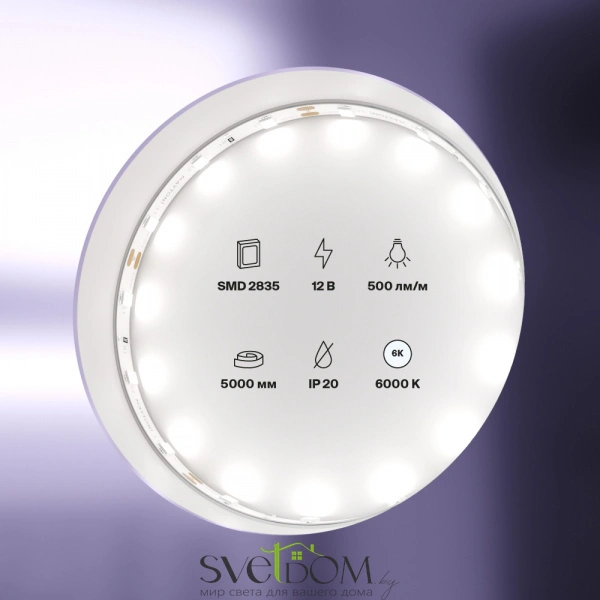 —Купить Светодиодная лента 12В 2835 4,8Вт/м 6000K 5м IP20 5мм 20009