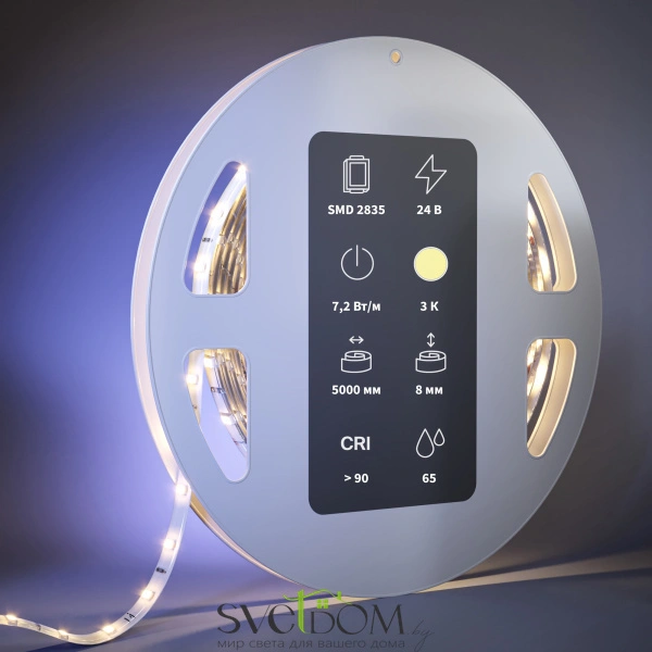 Универсальная светодиодная лента. Варианты мощности - 4.8 Вт/м (24 Вт на 5 м), 7.2 Вт/м (36 Вт на 5 м), 9,.6 Вт/м (48 Вт на 5 м), 11 Вт/м (55 Вт на 5 м), 14.4 Вт/м (72 Вт на 5 м), 17 Вт/м (85 Вт на 5 м), 8 Вт/м (40 Вт на 5 м) и 21.5 Вт/м (100 Вт на 5 м). Цвета - 2700К, 3000К, 4000К, 6000К. В ассортименте лента с плотностью светодиодхов 60 шт/м, 120 шт/м, 168 шт/м, 252 шт/м и 300шт/м. Размеры - 8х5000мм и 10х5000мм. Кратность реза  - 20 мм, 41,6 мм, 50 мм и 100 мм. Индекс цветопердачи >90Ra. Угол рассеивания 120°. Рабочее напряжение 12В и 24В на выбор. Для декоративной подсветки интерьера, мебели и потолочных ниш. Может использоваться в качестве подсветки рекламных конструкций.