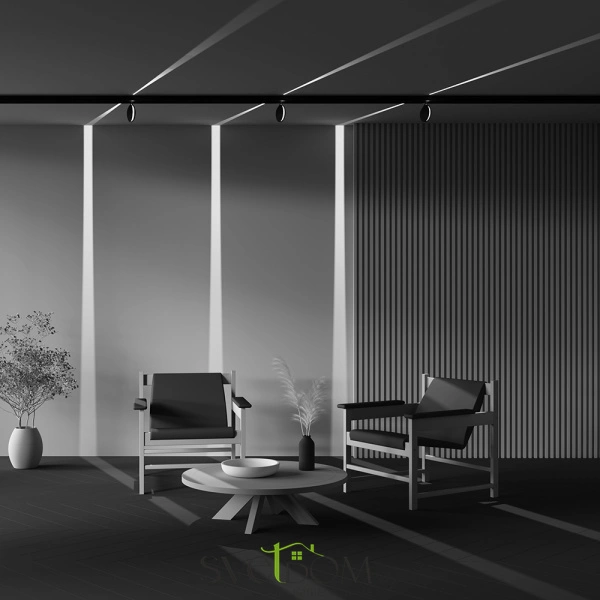 Алюминиевый корпус черного цвета.  led-источник света. цветовая температура 3000k, 4000к. модели с регулировкой цветовой температуры от 3000k до 6000k и диммированием по протоколу bluetooth mesh. эффект линии света – «светового коридора». специальная линза - оптический эффект кругового периферического освещения. поворотный механизм - вращение по своей оси. рекомендованная высота потолка в помещении для качественного и красивого луча - 2,2 - 2,5 метра.