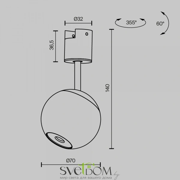 Декоративный трековый светильник способен украсить любое помещение квартиры, частного дома или офиса. Металлический корпус из алюминия в черном цвете. Плафон имеет форму шара для создания красивого светового эффекта, получения ровного светового потока с углом рассеивания 36 градусов. Отлично раскрываются цвета в интерьере (коэффициент цветопередачи более 90). Источники света – светодиоды Bridgelux высокой мощности, имеющие цветовую температуру 3000 К.