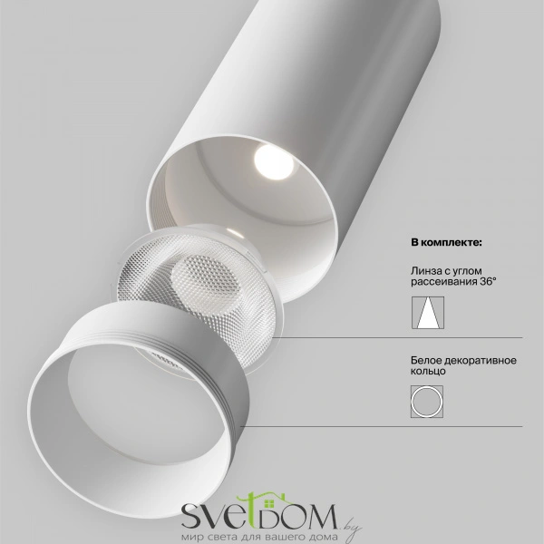 Базовый светильник для акцентной или направленной подсветки. Прочный металлический корпус в двух базовых цветах — черный и белый. Профессиональная оптика — линза для направленной подсветки. Три варианта мощности и размера. Гибкий угол вращения у основания модели на 355° в горизонтальной плоскости и 90° в вертикальной позволяет настроить четко направленный поток света.  Цветовая температура регулируется с помощью переключателя -  2700К, 4000К, 5000К. Встроенный LED-источник света утоплен в корпусе. Низкий уровень слепимости. Высокий индекс цветопередачи CRI>90. Сменные линзы и фильтры из дополнительного ассортимента позволят изменить стандартный угол 36° на выбор от 15° до 50° и сделать освещение более комфортным.