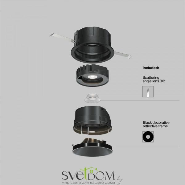 Встроенный утопленный источник света led, обеспечивает мягкое рассеивание света. поворотный механизм, позволит организовать акцентную подсветку зон и предметов интерьера. сменные линзы и фильтры позволят изменить стандартный угол 36° на выбор от 15°-50° и сделать освещение более комфортным. сменные рефлекторы в ассортименте, позволят подобрать цветовую гамму для большинства трендовых интерьеров.