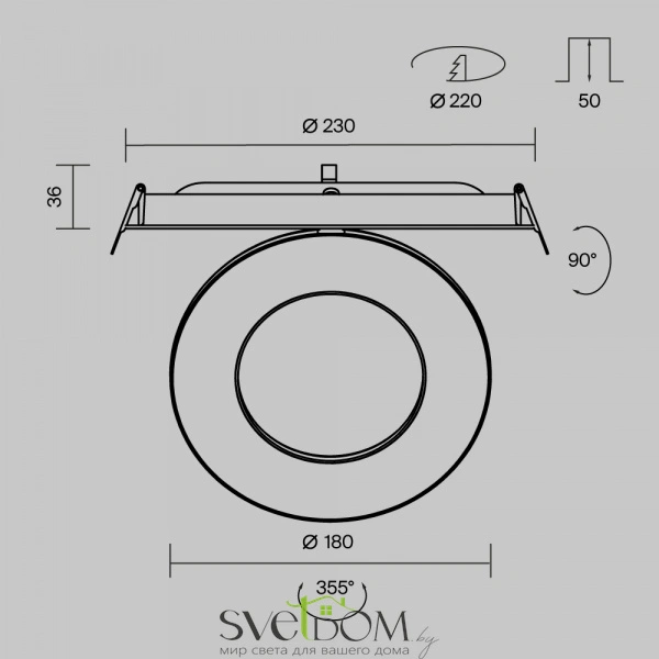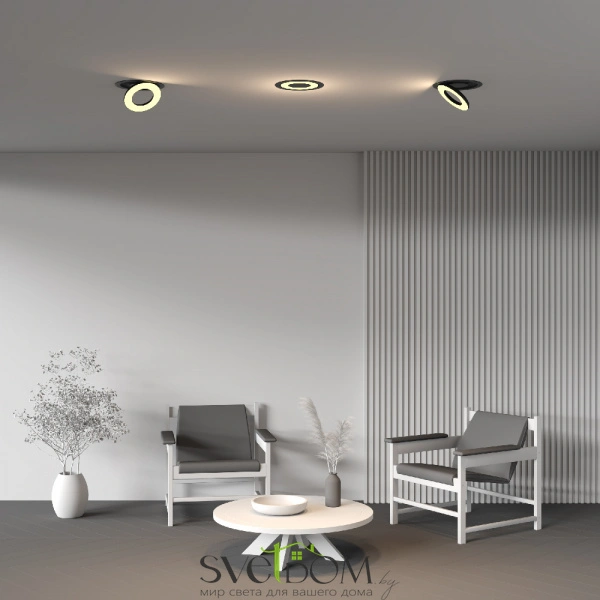 Первая дизайнерская серия встраиваемых потолочных светильников Maytoni​​. Вдохновение образом Гало. Материал корпуса - алюминий; цвета - черный, белый. Широкий угол рассеивания 100°. Цветовая температура 2700, 3000 и 4000К в зависимости от модели. Поворотный механизм 90° и 355° по горизонтали и вертикали. Белый матовый рассеиватель. Мягкое освещение. Компактная глубина встройки. Совместимость с источниками питания Dali и Triac. Эксклюзивный дизайн.