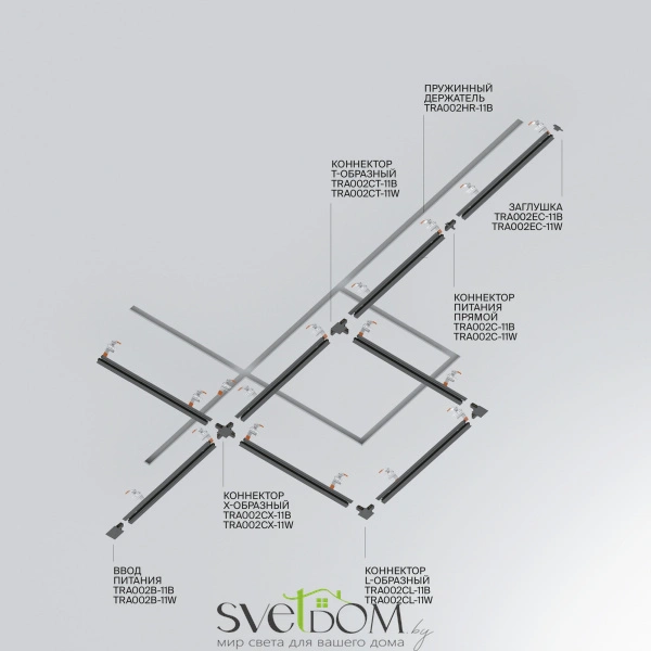 Трековые однофазные светильникиНакладной однофазный шинопроводКомплектующие для однофазной встраиваемой трековой системыКомплектующие для накладной однофазной трековой системыКомплектующие для однофазной трековой системы