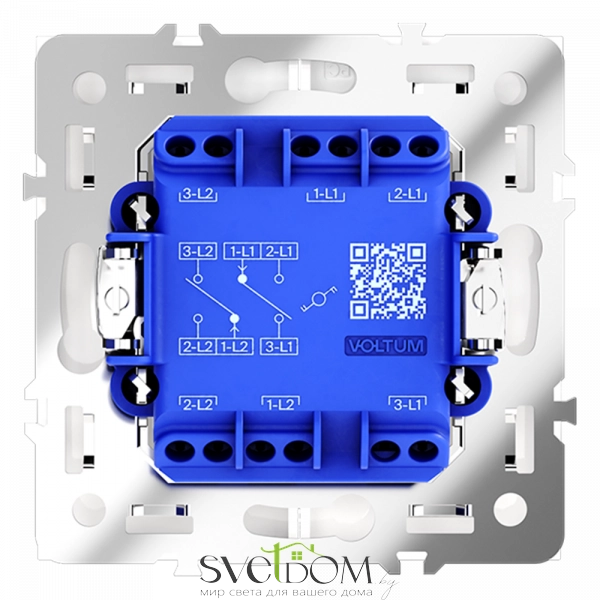Проходной переключатель двухклавишный Voltum S70 VLS020303 от Voltum — строгое изделие для аккуратного монтажа с рамками Voltum S70 (1–5 постов).